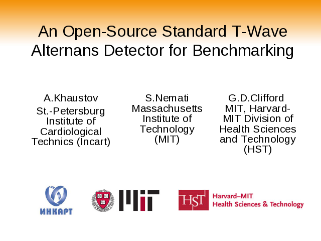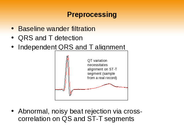 • The PTB Diagnostic ECG Database, consisting of 549 records from 294 subjects, most of which are about 2 minutes long (some are shorter). These are of very high technical quality (12 standard leads and 3 Frank leads, sampled at 1 KHz per signal with 16-bit resolution), mostly post-MI patients but with representation of other types of subjects including healthy controls. Each record is accompanied by a detailed clinical summary. This database was previously used in the 2006 QT challenge, and it might be interesting to relate QT intervals and TWA in the same subjects.