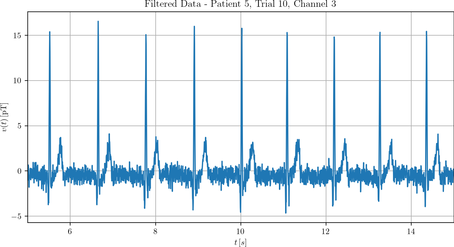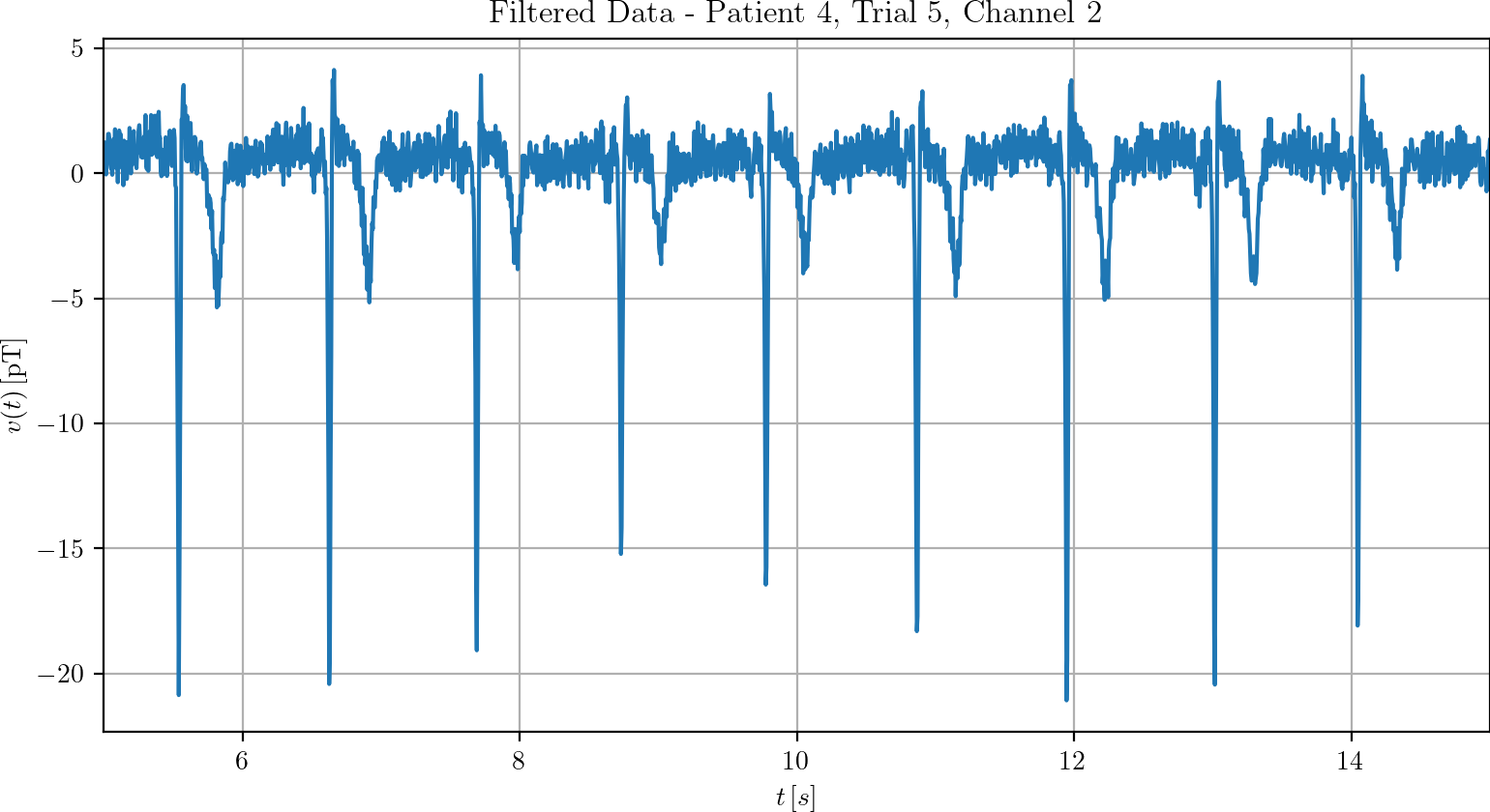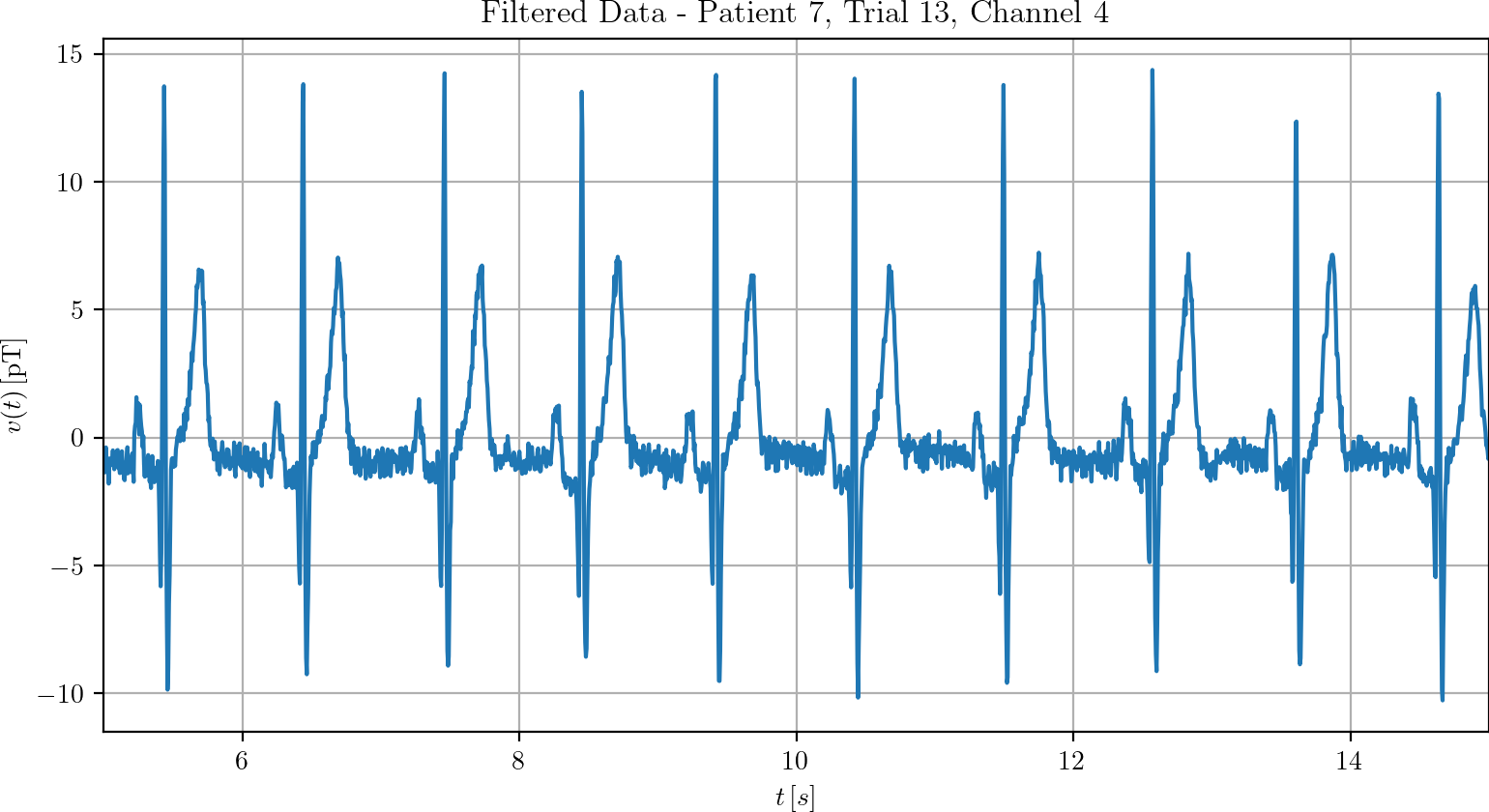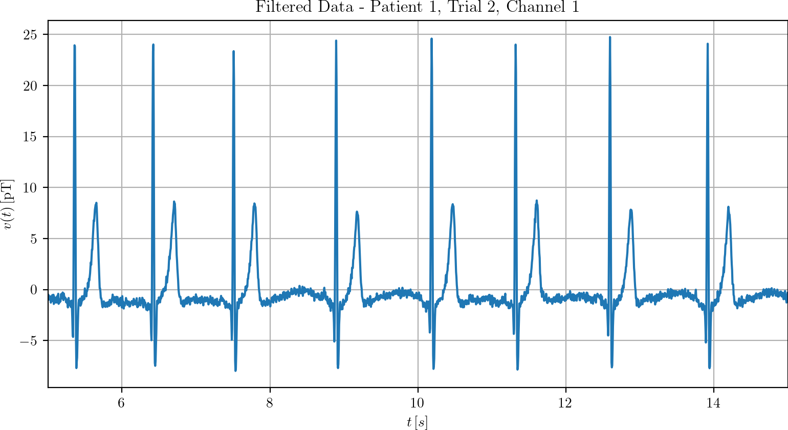 The data can then be used to investigate various aspects of the magnetocardiographic data. For example, the distribution of the magnetic field at different times over the subject's torso, or the typical shape and frequency components of the MCG signals [15]. Users may also wish to test the applicability of ECG delineation algorithms to MCG data. Although since no annotations are provided as of this release, manual annotation would need to precede quantitative evaluations of such algorithms.