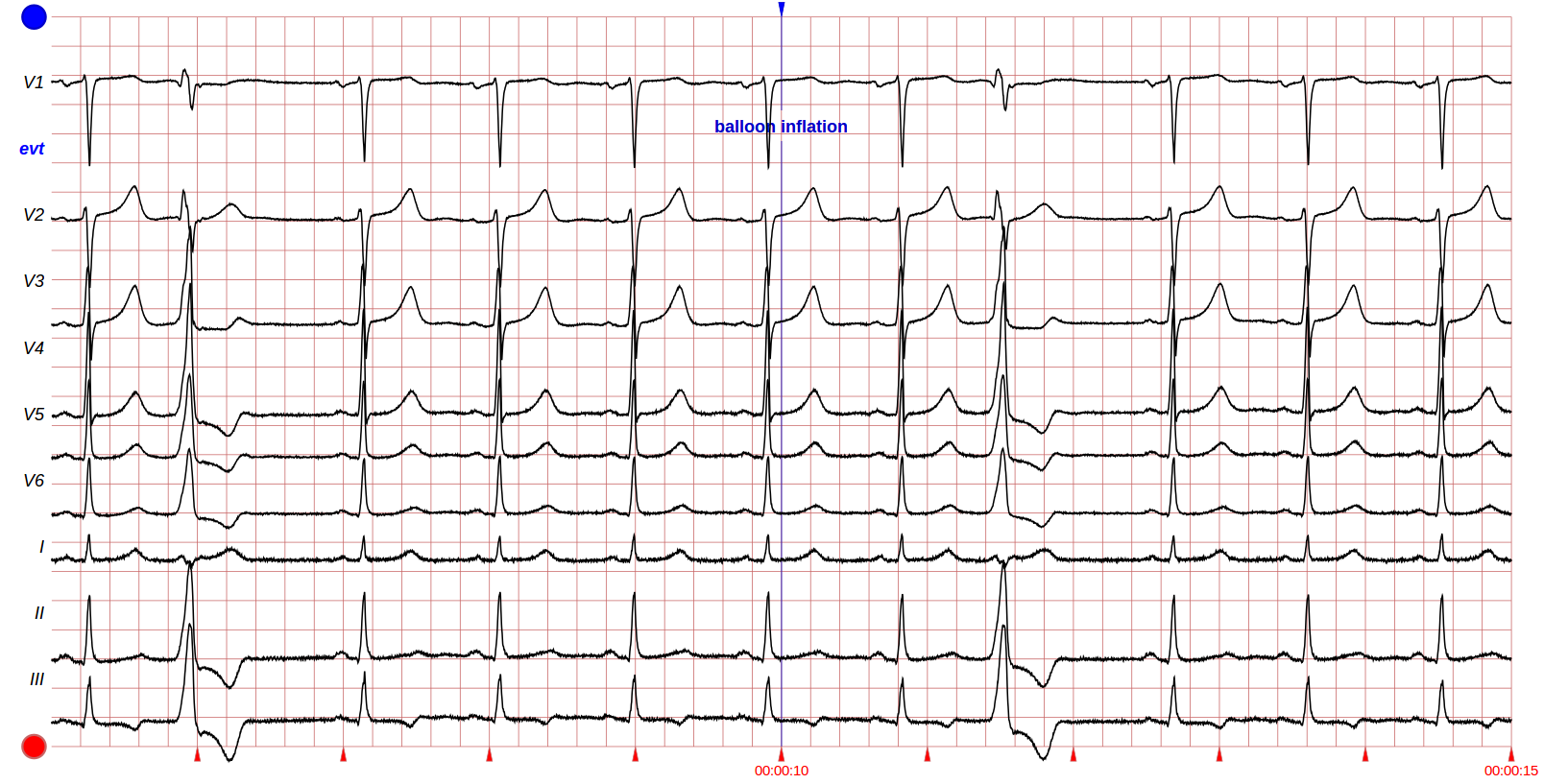 Dye injections during catheterization and angiography may case changes of the ECG morphology, and the injections are therefore annotated. However, not all injections were annotated, and therefore users are advised to be cautious when ECG changes are observed that mimic the dynamics commonly observed together with annotated injections.